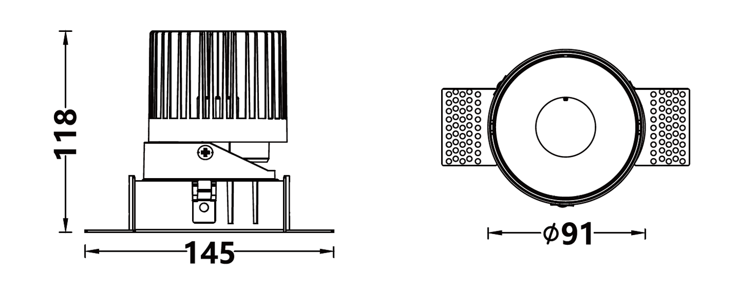 | 嵌⼊式⽆边框下照筒灯 | EN66008-010 | 10W | 37V/250mA | Ra>90 | 36° | 4000K | 3453CD | |||