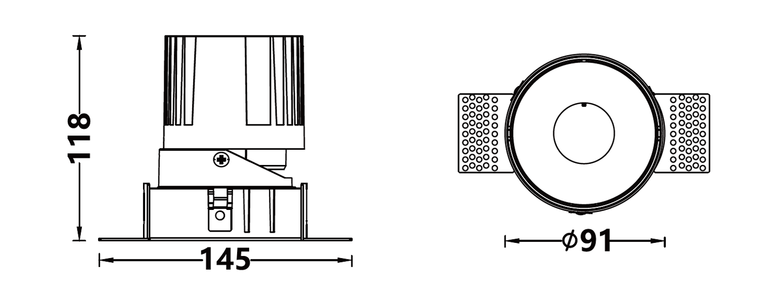 | 嵌⼊式⽆边框下照筒灯 | EN64008-010 | 10W | 37V/250mA | Ra>90 | 36° | 4000K | 3453CD | |||