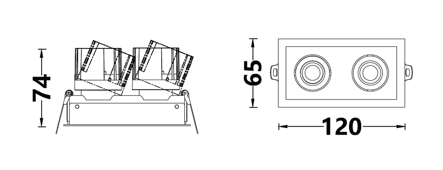 | 嵌⼊式防眩可调格栅筒灯 | EN53425-012*2 | 12W*2 | 37V/300mA | Ra>90 | 36° | 3000K | ||||