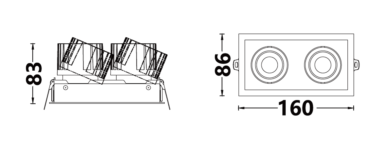 | 嵌⼊式防眩可调格栅筒灯 | EN53427-007*2 | 7W*2 | 37V/150mA | Ra>90 | 50° | 3000K | ||||