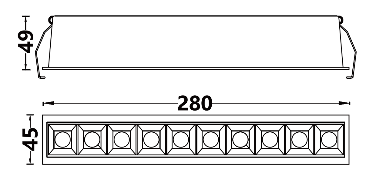 | 嵌⼊式条形筒灯 | EL36327-10*2 | 2W*10 | 30V/700mA | Ra>90 | 45° | 3000K | 4502CD |