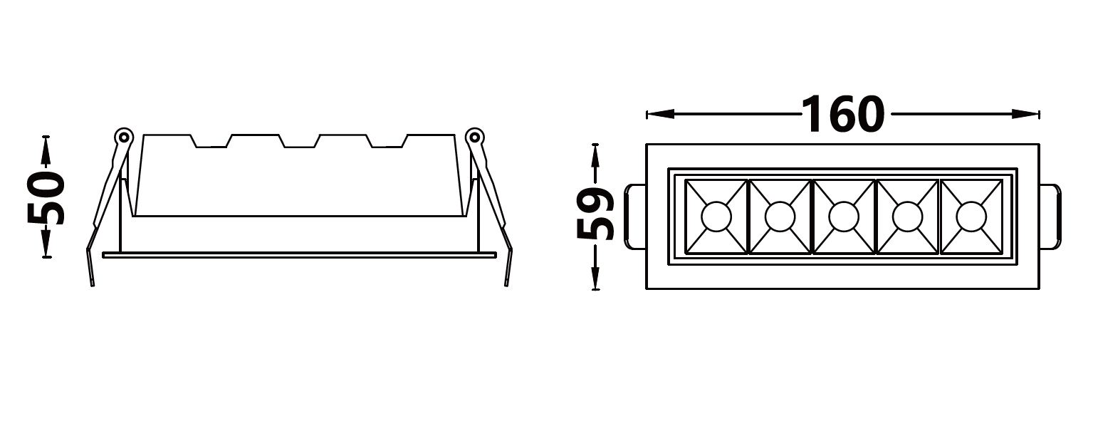 | 嵌 ⼊ 式 可 调 条 形 筒 灯 | EL35323-5*2 | 2W*5 | 15V/700mA | Ra>90 | 45° | 3000K | 2251CD |